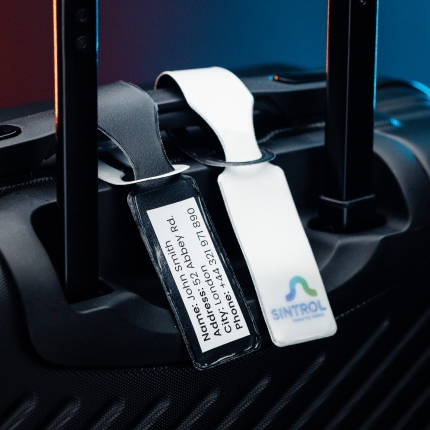 Luggage tag that allows to label the luggage with all the necessary personal information and provides reflective properties for better protection after dark.