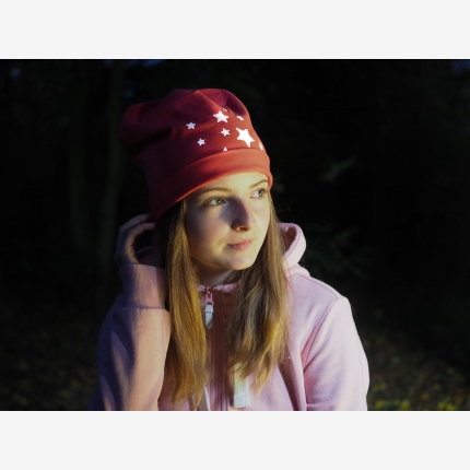 The beanie caps are double-layered, made of 95% cotton and 5% elastane. Very flexible and comfortable for both runners and children.