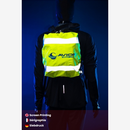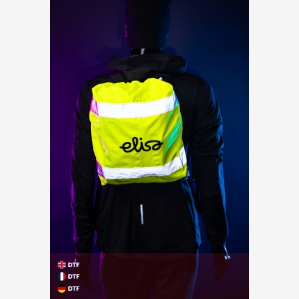 Covers of this type fulfill two functions: they protect the backpack from rain or snow and they improve the visibility of the user on the road, hiking trail, or at work. The cover has two reflectors. Waterproof cover for a backpack or a bicycle pannier. 100 % waterproof. Convenient backpack plastic clips with a snap. 100 % fluorescent yellow polyester. Designed for standard backpacks (25–42 L).
