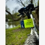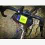 Reflective bike license plate attached to bike rack or saddle offers protection against lack of visibility after dark.