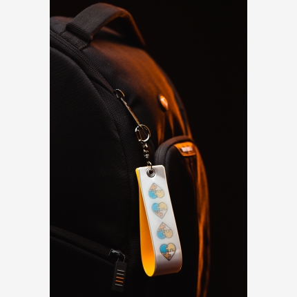 Reflective keyring/ hanger attached to bags/backpacks/outer clothing that provides more visibility after dark.Certified reflective films come in two colors: yellow and silver. Should our customers require a bigger color palette, we can offer RGR Reflomax foil of promotional quality.Product eligible for EN certification provided it is made from certified foil and complies with the required reflective surface.