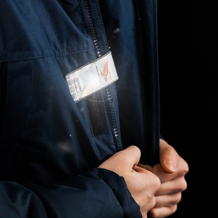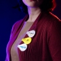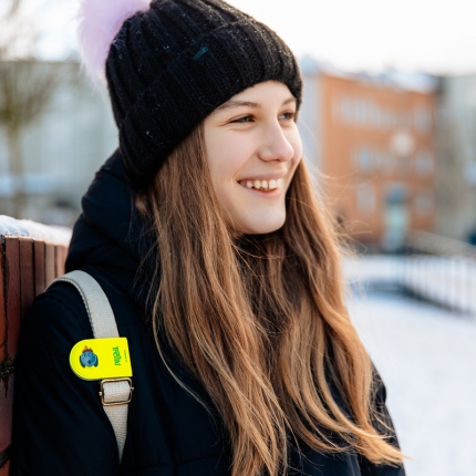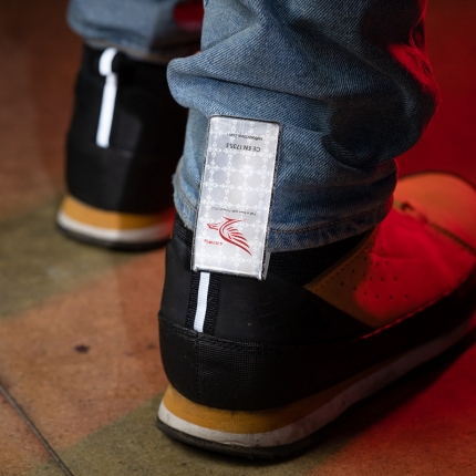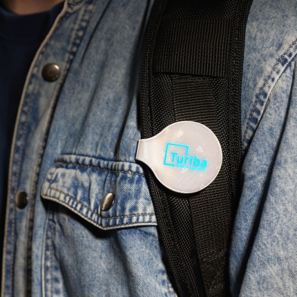 Small and practical reflector attached to clothing or bags, sports equipment etc. Adds extra visibility for pedestrians after dark.