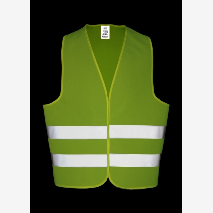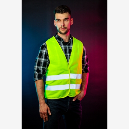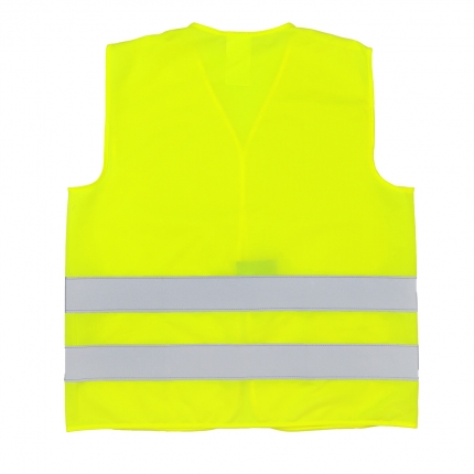 Vest sewn in Poland, with two horizontal reflective stripes, made of 100 % polyester – grammage 140 g/m2.