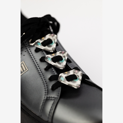 Shoe reflector attached to shoelaces. Reflects the light of oncoming cars thus ensuring safety.