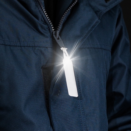 Small but potent, reflective zip puller gives more visibility to pedestrians when properly attached at shoulder height.